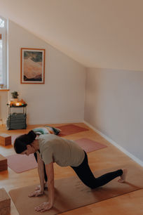 Achtsamen, fließenden und statischen Asanas: Diese Übungen helfen Dir, Dich körperlich zu spüren und die Weisheit Deines Körpers zu erfahren. Sie fördern die Flexibilität, Kraft und das Gleichgewicht, die für die Geburt von Bedeutung sind.
